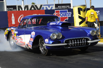 Brad Pierce’s ’58 Corvette is one of the coolest cars in Super Gas, but to be perfectly honest, it also happens to be one of the slowest. While Pierce has no problem running the 9.90 index, his trap speeds often hover in the high-130-mph range, which puts him well behind most of his competitors, who routinely stop the speed clocks with runs in the 160- to 170-mph range.