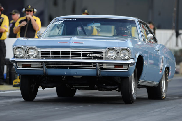 Hefler, who also won national championships in 2010 and 2013, drove his Fort Worth, Texas-based ’65 Chevy to the Summit Sportsman victory, defeating Californian Willie Hoefer and his ’94 Camaro in the final round.