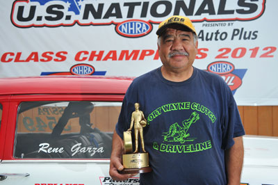 Rene Garza knows that he is lucky to be alive, so even though his driving days are most likely over, the fact that he has a chance to go racing this season with his youngest son, Joey, is nothing short of a miracle. Garza, 64, has been a loyal NHRA racer for more than 40 years, and his red and white two-tone ’55 Chevy Super Stocker is easily one of the most recognizable Sportsman cars in the NHRA North Central Division. Garza’s driving career essentially ended last September after he contracted the West Nile virus, which is usually transmitted via a mosquito bite. Less than 1 percent of West Nile cases are considered severe and result in neurological disease, but in Garza’s case, it was nearly fatal.