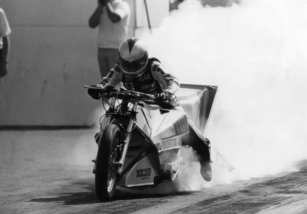 Vance began racing his motorcycle at Lions Drag Strip in Southern California in the early 1970s when he was just old enough to drive. It was at Lions that Vance would meet Byron Hines, who was building Vance’s bike at the time. With Vance’s riding talents and Hines' engine-building and tuning ability, the two formed the most famed pairing in motorcycle drag racing.