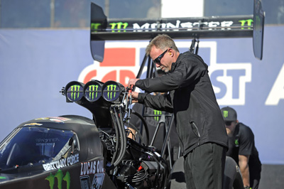 The cool, dry air and well-prepped racing surface allowed for a barrage of low-3.7-second runs by many in the Top Fuel ranks. Tony Schumacher left Phoenix feeling especially well about his U.S. Army dragster after recording a best of 3.683 at 325.37 mph. He began running on Thursday with new parts, a new race car, and several new crewmembers on a team that doesn’t historically have a lot of crew turnover.