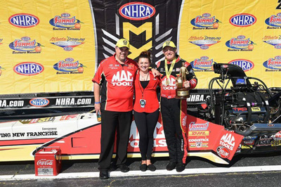 I couldn’t believe we had two cars going to the final round for the second time in just a couple months! First in Vegas with Del and Alexis and now in Atlanta?! It was too good to be true. It was going to be a perfect ending to an amazing weekend. As I’m sure you may have heard by now, the final round between Doug and J.R. was the closest race in NHRA history, with the margin of victory less than .0001-second. Someone asked me before the final round who I thought was going to win, and I said that I thought they would tie. Obviously I need to take up a career as a psychic because that’s pretty much what happened!