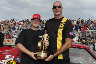 The “youth movement” went a step further this year when, two days after his 18th birthday, Koy Collier (pictured) collected the Super Gas win at the AAA Insurance NHRA Midwest Nationals in St. Louis. Earlier in the season, 16-year old Houston Raikes bagged the Stock title in his NHRA debut at the JEGS SPORTSnationals in Bowling Green. In order to enter an NHRA Mello Yello series national event, a competitor must be at least 18 years of age while competitors as young as 16 are eligible to enter Lucas Oil Series divisional events and the JEGS SPORTSnationals race so Collier and Raikes each just made it in under the wire.