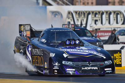 In Funny Car, Beckman was quickest and produced a pair of 3.89-second runs, with his best effort in the Infinite Hero Foundation Dodge Charger a 3.894 at 327.03.