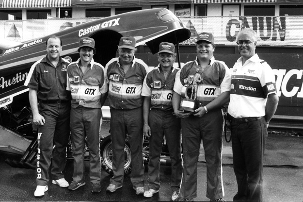 Of Austin’s 75 career wins, 75 came in Top Alcohol Funny Car, giving him the No. 4 spot on the Sportsman all-time wins list. Austin, who is most known for his Top Fuel/Top Alcohol Funny Car double at the 1991 Topeka event that made him the first driver in history to win two Wallys at one national, picked up the first of his 70 Top Alcohol Funny Car victories at the 1986 Cajun Nationals, at which he bested Dal Denton in the final. Austin’s final win came in 2002 when he defeated his uncle, Bucky, at the season opener in Pomona. Austin is also a four-time Top Alcohol Funny Car national champ.