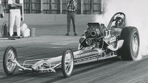 The car was powered by two 255-cid, four-cam Ford engines that Busby has purchased from three different Indy car teams after a USAC engine-block rule change had made them illegal. He bought five engines and spare parts for a paltry, fire-sale price of just $3,500. The Don Long chassis was an old Jr. Fuel chassis that Long front-halved for about $1,200, and the trio put maybe another $1,500 into getting car the car race-ready, making the car perhaps one of the least expensive Top Fuel cars ever built.