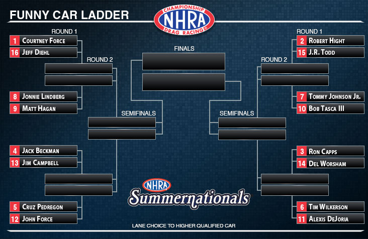 Eliminations at the 48th annual NHRA Summernationals begin at 11:00 a.m. on Sunday at Old Bridge Township Raceway Park.