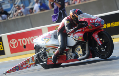 Johnson’s journey began at the 1987 Englishtown race. Then a resident of California, he put his Kawasaki in a crate and had it shipped to the track. Johnson used the crate as his pit area for the weekend. For the record, Johnson qualified No. 16 at that event and defeated Rick Gero in the first round before losing to Frank Martorelli. Johnson didn’t win his first race until 2004 and now has six wins in 20 final rounds. His career round win record is 233-366 with 27 DNQ’s.