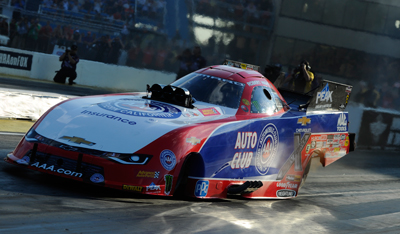 FUNNY CAR Q1 (6:40 p.m.): Robert Hight matched up against Jack Beckman in the first round of qualifying, with admittedly a lot less on the line than when they faced off in the final in Norwalk a week ago. Still, Hight surely enjoyed the result of this rematch: the best time of the first session (3.917) while teammate John Force posted the No. 2 time (3.943). Ron Capps (3.946) and Beckman (3.966) slotted into third and fourth. A couple of Countdown contenders in Cruz Pedregon and Alexis DeJoria finished fifth and sixth.