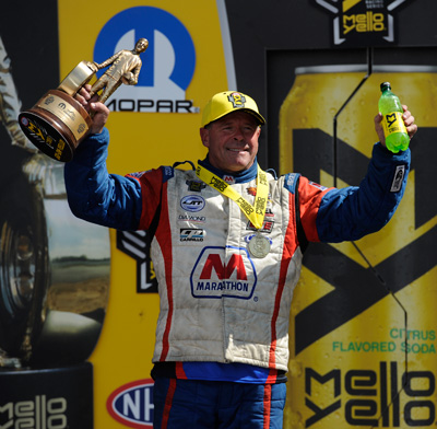 The story isn’t much different in Top Fuel, where Steve Torrence tightened his grip on first place by earning his fifth victory of the season. He did it by beating a good friend, Antron Brown. It was their meeting of the season in a final round, and Torrence has the best of Brown 2-1. That should help soothe the pain of their lopsided rivalry, which Brown dominates.