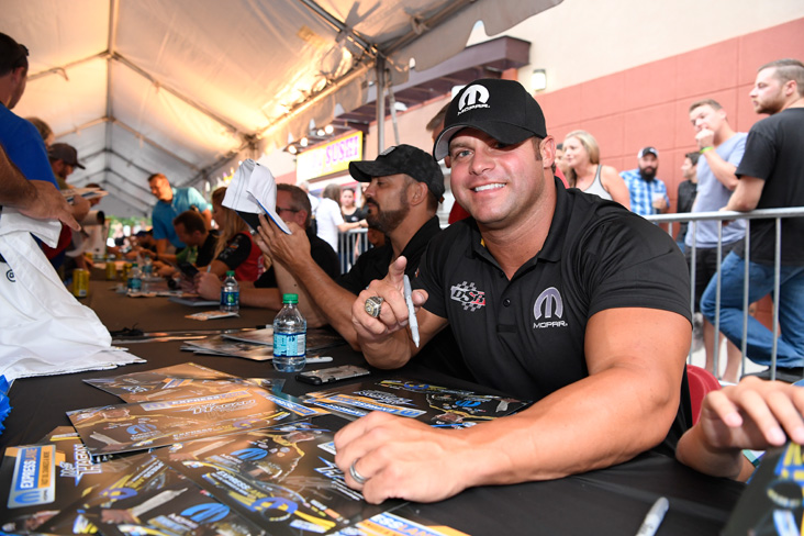 Mopar-sponsored Funny Car hero Matt Hagan was among the NHRA Mello Yello stars who took part in an autograph session at the Block Party.