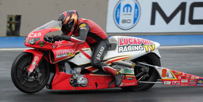 “I finally got a hot motor for my bike, but it weighs 20 pounds more than my other one, so we had problems qualifying it,” said James. “7.30s aren’t going to cut it. I’ve got another engine under way that I’ll have out later, but right now I’m going to concentrate on Sonoma, which is my hometrack. I’d like to qualify both of our bikes because it would be the first time that a father and a daughter have qualified together in Pro Stock motorcycle. But right now my primary focus is Melissa’s bike.”