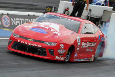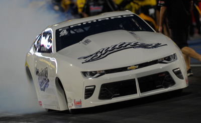 Pro Stock points leader Bo Butner has a “new” car at this event, and it might seem like a bad idea to change horses in the middle of the stream, but the move was necessary for Butner to be able to run the current-model Camaro body. The car he has been driving was one of Greg Anderson’s 2016 rides outfitted with the 2016 body.