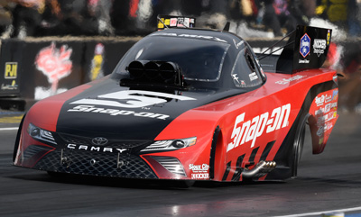 In Funny Car, Courtney Force did one better than Kalitta by setting both ends of the track record (3.889 at 328.3). That’s becoming old hat to the Advance Auto Part driver, who has made a habit of resetting track records and grabbing poles everywhere she goes. She already has five No. 1 qualifiers under her belt this season, but she’s itching to do damage on Sunday.