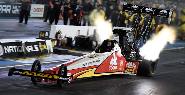 Steve Torrence and Tony Schumacher rounded out the top three, while both Brittany Force and Shawn Langdon also notched 3.7-second runs. Only 14 of the 16 cars on property recorded runs on the first day of competition, but there’s another day of evening qualifying to come today.