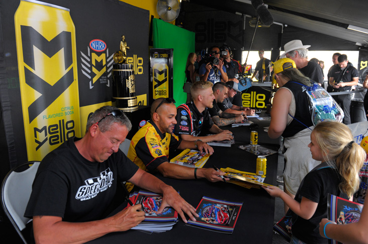 NHRA Mello Yello stars Bo Butner, J.R. Todd, Cory Reed, Jonnie Lindberg, and Steve Torrence took part in the traditional Mello Yello autograph session for fans.