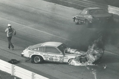 It was Thursday of the 1977 U.S. Nationals, in the second session of Pro Stock qualifying. Larry Lombardo and team owner Bill Jenkins, the reigning world champs, entered the event trailing Don Nicholson by just more than two rounds’ worth of points. After an opening pass of 8.75 in Thursday’s first qualifying session, Lombardo pulled Jenkins’ Grumpy’s Toy XIII Monza into the right lane for another shot. As he pulled high gear, the right rear wheel rotated inside the tire, cutting its valve stem and leading to an immediate depressurization.