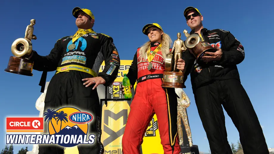Leah Pritchett, a Redlands, Calif. native, earned the second Top Fuel victory of her career at the 57th annual Circle K NHRA Winternationals on Sunday at Auto Club Raceway at Pomona, her home track.