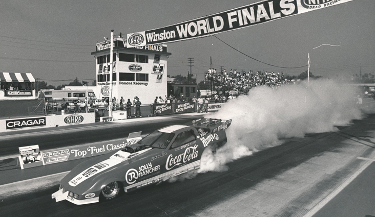 Speaking of John Force, here’s a cool burnout photo from the 1985 World Finals in Pomona, smoking the hides under the landmark starting-line banner. This was Force’s first season with Austin Coil on wrenches and they finished fifth in points, but it was hardly Force’s first Top 10 finish. He actually finished higher (fourth) in 1983 with Larry Frazier tuning and was eighth in 1979, but the best obviously was still to come. The Finals came on the heels of their first final together –- a runner-up behind John Collins two weeks earlier in Phoenix -- and the duo was still more than a year from Force’s first career win in Montreal in July 1987. They finished fourth in ’86 and ’87 and third in ’88, but, oddly, dropped to sixth in 1989, the year before they won their first championship.