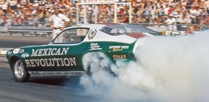 It was a sad day earlier this week when I learned of the passing last Sunday of Texas nitro tuning veteran Bobby Rex, who’s been a part of drag racing for as long as I’ve been a fan. Rex, who first came to notoriety as the tuner of Johnny Valdez’s Mexican Revolution Funny Car in the 1970s (photo by Steve Reyes below), earned a second round of tuning notoriety in Top Fuel with Doug Foxworth throughout the ‘90s. The team had some good times and some rough times –- including a blowover and a crash -– but Rex finally reached the winner’s circle of an IHRA event with Jim Bailey driving his car, dubbed Havoc.