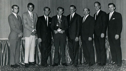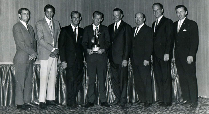 The winners of the 1969 U.S. Nationals initially got the traditional old trophy in the winner’s circle, and the new trophy was handed out at the annual post-event banquet with the first recipients being Top Fuel winner Don Prudhomme and the winners of the 14 previous Top Eliminator/Top Fuel titles at the Nationals dating back to the Great Bend, Kan., event in 1955.