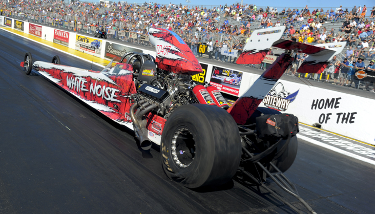 Two years ago, White reached the final round of Top Dragster presented by Racing RVs in Brainerd, and she was turned away by Angie Travis. White landed in another all-female final in St. Louis, and this time, she won the Wally with a win against Afton Swanson. White did not have an easy time reaching the final with races against world champion Jeff Strickland, JB Strassweg, No. 3 qualifier Jim Thorp, and reigning champion Lynn Ellison. White’s best performance came against Ellison with a .019 light and a 6.172 on her 6.17 dial. [video]