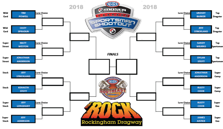 The NHRA Southeast Division Moser Sportsman Shootout will take to the track at Rockingham Dragway this Friday, Oct. 19, on opening day of the NHRA Lucas Oil Drag Racing Series event.