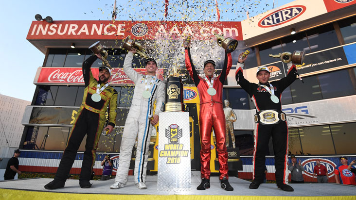 Your event -- and world champions -- from left, J.R. Todd, Tanner Gray, Matt Smith, and Steve Torrence.