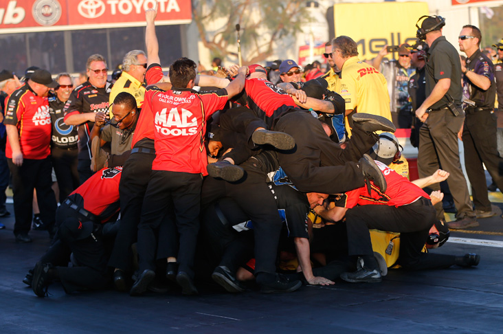 Todd's final-round win set off the team's traditional starting-line mosh pit, but this one was a bit more special