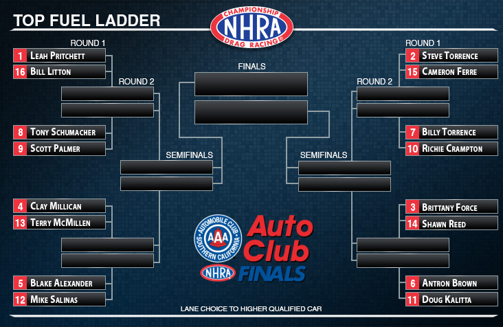 That’s admittedly a tall task, but it’s the hand the two have been dealt at the Auto Club NHRA Finals. Tonglet will face Ryan Oehler in the first round of eliminations coming from the No. 5 position, while Arana battles Freddie Camarena from the No. 2 position.