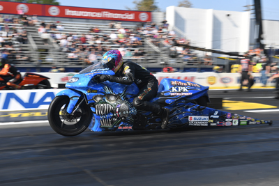 PRO STOCK MOTORCYCLE WINNER MATT SMITH: "We went through a lot today. The air line broke during the first round and then the transmission broke going into the lights during the second round. So, my guys did their job and we turned the bike around and fixed all the stupid stuff that broke. Then we put up three 200-mph runs and then ran the fastest run of all time in the final. I just have to give it up to my guys who did all this amazing work on my bike. It's really amazing and they deserve all the credit in the world."