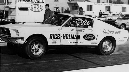 While we prepare for the official start of the 2018 season this week, let’s begin with a quick history lesson. In 1968, the factory muscle car wars were at the forefront of NHRA drag racing. Manufacturers were engaged in a constant battle of one-upmanship to produce the quickest and fastest production cars in the world and oftentimes, they pushed the limits of street ability in favor of straight-line performance. In February 1968, Ford Motor Company debuted its 428-cid Cobra Jet Mustangs at the season-opening NHRA Winternationals at what is now Auto Club Raceway Pomona. A total of four Cobra Jets participated in the ’68 race including Al Joniec, who drove his Rice-Holman entry to a stunning final round win over Dave Wren’s Max Wedge-powered Plymouth in the final round. Racing in the SS/E class, Joniec posted an 11.49 best at over 120-mph, outstanding numbers for a late 1960s Super Stock car. The other entries were driven by Hall of Famers Gas Ronda, Hubert Platt, and Randy Ritchey.