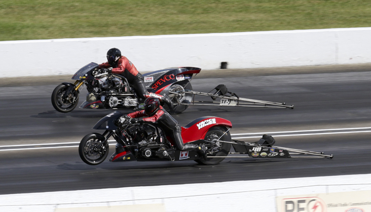 Tii Tharpe raced to a Top Fuel Harley title in a winner-take-all final by defeating Doug Vancil at the biggest race of the year. It doesn't get any better than that and it kept the Mickey Thompson Top Fuel Harley title in house at Jay Turner Racing as the boss picked up the title in its inaugural running in 2017. [video]
