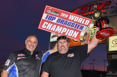 Eugene, Ore., racer Nero, came into the weekend leading the points in Top Dragster presented by Racing RVs over Mark Jones who needed to win the event to overtake Nero. Jones lost in round two and the celebration began for Nero and his team.