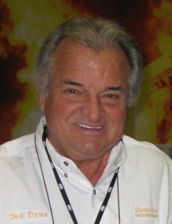 Ted Dzus Jr. (West Islip, N.Y.), known affectionately as “The Quarter Turn Man,” took a product, technically known as a cam-locking fastener, but commonly known as a Dzus Fastener, from the aircraft industry and into the motorsports and custom automotive arenas. The Dzus Fastener was the brainchild of Ted’s grandfather, William, an immigrant Ukrainian engineer who worked for a Long Island aircraft company in the 1930s. Developed to secure aircraft body panels which previously were loosening and rattling, the fastener was deceptively simple, using a spring wire and a button shaft machined to accept the spring into an over-center locking fastener, which required only a quarter of a turn to lock or unlock. Following World War II, Army and Navy aircraft mechanics remembered this straightforward, strong, easy-to-use fastener and adapted it to the race car market. The first recorded use in motorsports was by the famed Justice Brothers (Ed and Zeke) in California on a Kurtis-Kraft midget oval track car (Frank Kurtis did not like the fact they went behind his back, but he quickly saw their value.). Working for his grandfather and father at the company in the 1960s, Ted, Jr’s love for automotive performance helped expand the company’s market horizons outside the aircraft industry. Ted Dzus, Sr. became President of Dzus Fasteners in 1964, after his father’s death, and Ted, Jr. assumed control in 1982. The idea spread to drag racers like Don Garlits and others, and the Dzus Fasteners were marketed by Mr. Gasket and Moroso. They became “must use” items to quickly secure body panels which were often removed to access the engine and driveline for service in almost all forms of motorsports. Ted, Jr. also developed variants for engine valve cover retainers, radiator hose clamps, battery clamps and hood pins. Outside the automotive and aerospace industries, Ted Jr.’s vision also extended to the medical hardware market. He created a version of the fastener to use to repair complex long bone fractures. He promoted the use of his “magic buttons” on his own drag race cars (a 1973 Vega, a 1980 Chevette and a 1955 Chevy), plus a 1951 Mercury and a 1951 Kaiser Henry J cutting edge street rods painted in Dzus’s trademark School Bus yellow.