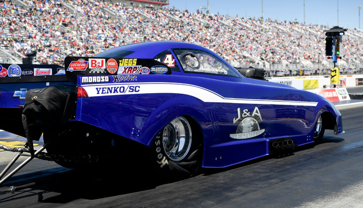 Fletcher earned win No. 107 for the Fletcher family when he wheeled his father, Dan’s COPO Camaro to the Super Stock title. Fletcher, who also won the 2009 Reading event, had his work cut out for him with a tough ladder that included races against Aaron Allison, Ed Longhany Jr., Ken Miele, Dick Kincaid, and in the final, James Williamson. Fletcher won the final with a solid run after Williamson missed the Tree in his J/SA entry. [Video]