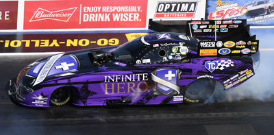 “We’ve made good runs in eliminations – we’ve only smoked the tires once – so we feel we have a good combination, so I have to believe still in what we’re doing and that nothing changes. If we get maximum points here and Steve stumbles, then we’re back in it with points and a half in Pomona. We want every bonus point here. I’m going to go up there and look at the racetrack and run what I think is 96 percent of what it can handle. Having that one extra bonus point in Pomona is as good as having 1,000, so we want everything we can get.”