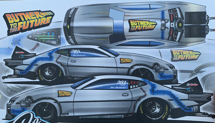 The time-traveling DeLorean won’t give Butner a shot at going back in time to fix his 2018 Pro Stock title chances, but he’ll certainly look good as he chases his second Wally of the season. Custom hero cards are available at Butner’s trailer (pictured below), and you’ll want to check out the faux-DeLorean going much, much quicker than 88 mph on the drag strip at least four times this weekend.
