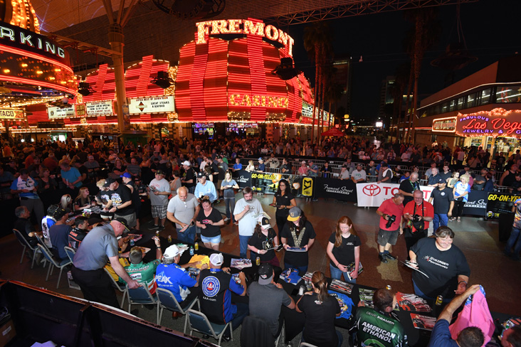Race weekend in Las Vegas kicked off with the traditional Fanfest at the Fremont Street Experience where the stars of the NHRA Mello Yello Series took part in the largest autograph session of the season.
