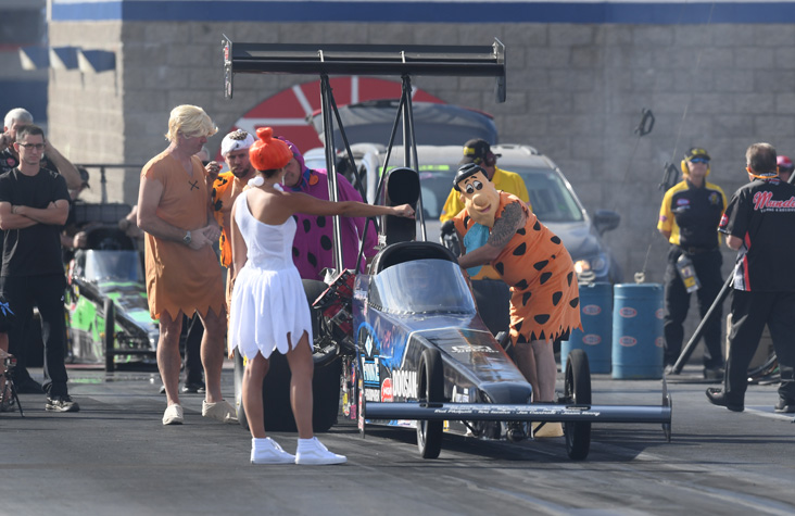Jackie Fricke’s Alcohol Dragster team was yabba-dabba-do with their Flintstone theme.