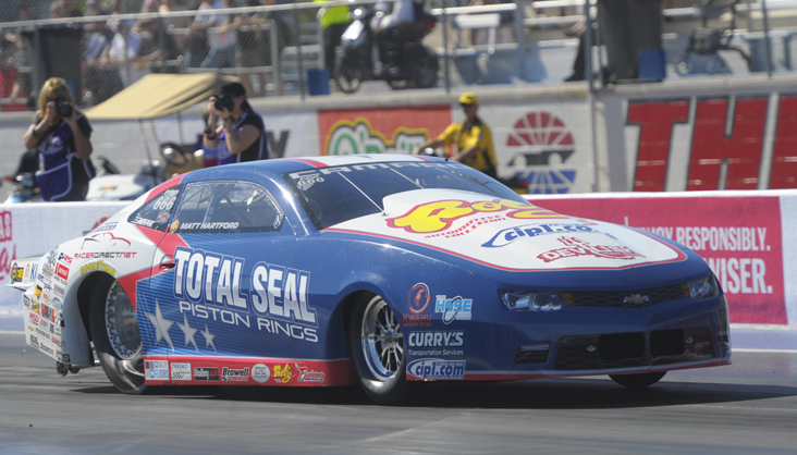 Matt Hartford might not be running for a championship, but the Arizona native hopes he can hurt some feelings on a part-time basis. He advanced to the semifinals at the AAA Texas FallNationals before turning on the red light against Tanner Gray but feels his Chevy Camaro has turned a corner since a disappointing Western Swing at the midpoint of the season.