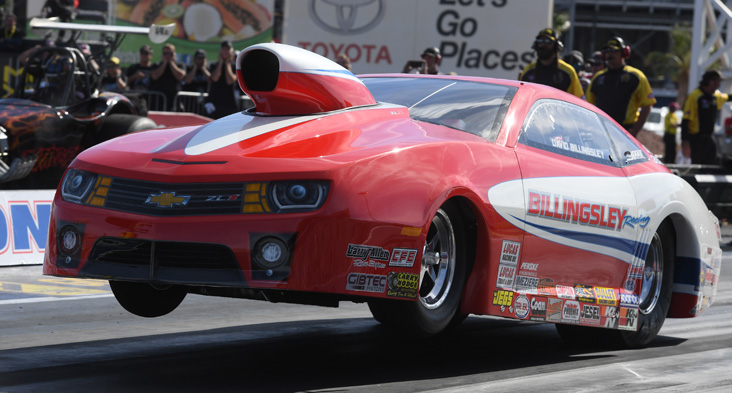 Billingsley claimed his fifth career win after driving his D/EA Camaro past Doug Engels’ D/ED in the Comp final round. Billingsley, whose most recent win came at the 2013 JEGS SPORTSnationals in Columbus, scored a key quarterfinal win over low qualifier Jim Greenheck to earn a bye run into the final round. Billingsley was docked .11-second in Competition Index Control penalties before the final, but that paled in comparison to Engels, who was penalized in every round and found himself down .25-second before the final. Not surprisingly, Engels fouled in the final, slowing Billingsley to coast to the win. [Video]