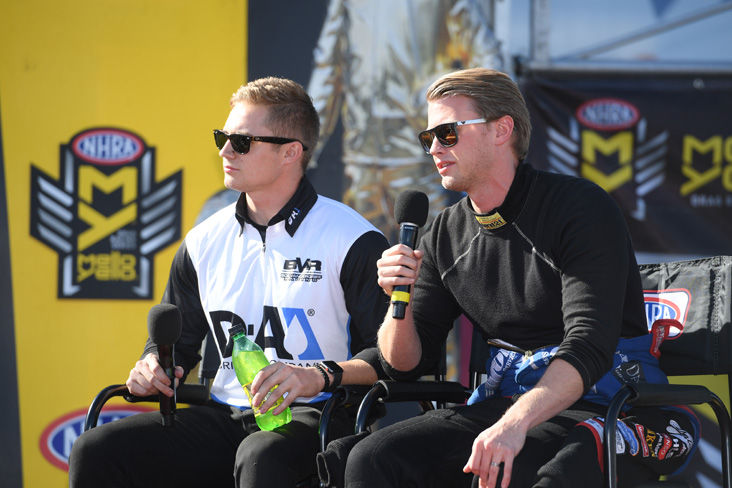 Jordan Vandergriff, left, who will join the Top Fuel ranks next year in his uncle Bob’s D-A Lubricants-sponsored dragster and teammate Blake Alexander, who debuted the D-A livery at this event, talked about their 2019 plans.