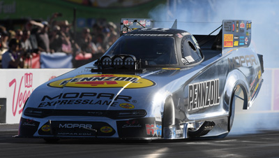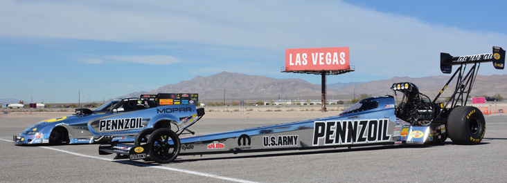 Even if the faux-chrome designs on her Pennzoil dragster and that of teammate Matt Hagan’s Funny Car weren’t as shiny and dazzling as the Las Vegas lights, Leah Pritchett and crew still would be shining bright after a superlative qualifying effort with passes of 3.783, 3.781, 3.744, and 3.731 that carried her and the car the crew has nicknamed Sylvia (get it?) to the No. 4 qualifying spot.