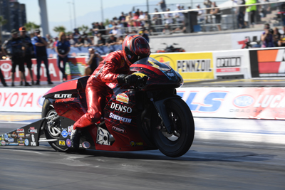 LE Tonglet gets a chance to help both himself and the rest of the Pro Stock Motorcycle field in the first round of racing. The Nitro Fish Suzuki racer takes on Matt Smith, the current leader, with a chance to move closer to his second championship.