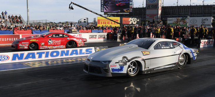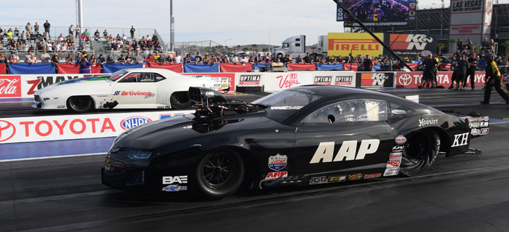 PRO STOCK FINAL (4:21 p.m.): Bo Butner, near lane, earned his first win at The Strip at Las Vegas Motor Speedway by defeating Erica Enders via a holeshot. He cut a .007 light to get a .013-second advantage, eventually winning by just .008 second. That win for the defending Pro Stock champion is the first since the season opener in Pomona.