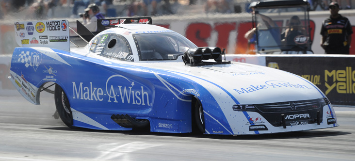 But crew chief Jon Oberhofer and Todd Smith righted the ship Saturday, ripping off a 3.911 in Q3 and a steady 3.926 in Q4 to earn two bonus qualifying points and the No. 2 spot in the field, good for another seven points. They entered the event trailing points leader Robert Hight by 11, but Hight only got one bonus point and, for qualifying No. 7 just three points, chopping Hight’s lead almost in half, from 11 to six.