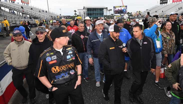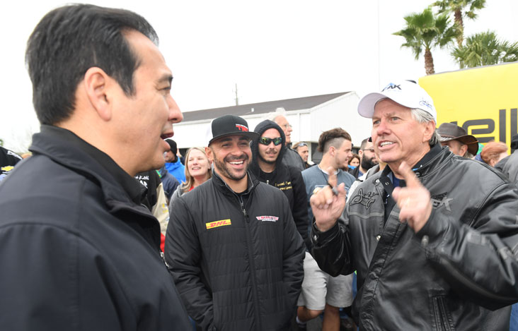The Darrell Gwynn “Track Walk for those who can’t” attracted a large number of NHRA pro racers including current Mello Yello Funny Car champ J.R. Todd and rookie nitro racer Austin Prock. The annual event raises money for the Marc Buoniconti Fund to Cure Paralysis.