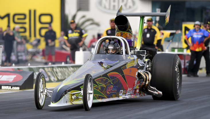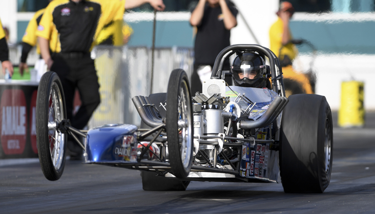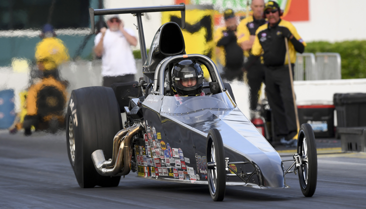 Meyer was the quickest and fastest driver in Top Alcohol Dragster with bests of 5.177 and 285.35 mph, which is the second fastest speed in class history. She also got the job done in eliminations with wins against Ken Perry, teammate Julie Nataas, Jeff Veale, and in the final, No. 16 qualifier Mike Bucher. [Video]
