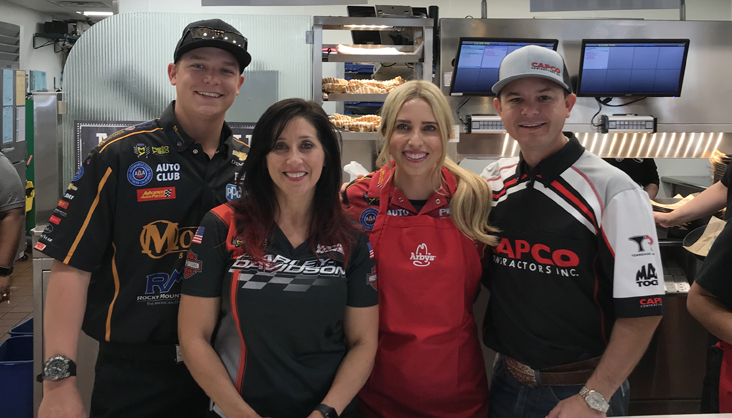 Austin Prock, Angelle Sampey, Brittany Force and Steve Torrence took over an Arby's in Commerce before the Friday qualifying session. You can see more from that wild afternoon on the NHRA's Twitter account.